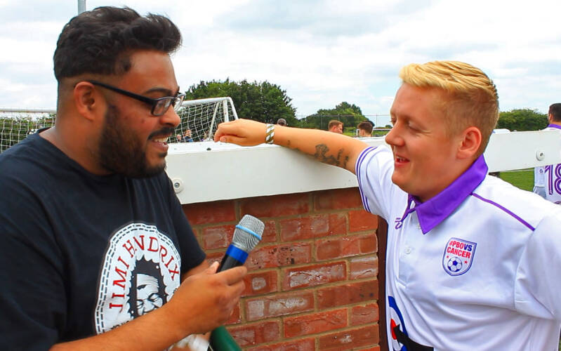 I started as a volunteer in 2016 providing live, pitch side commentary, with a friend of mine who at the time was a budding stand up comedian. Through the years I became the event logo designer, contributing three iterations over the years and Football VS Cancer's on screen interviewer, providing behind the scenes footage and interviews with the 'legends' who took part in the events, to name a few, Ex-Footballers, Razor Ruddock, Colin Hendry, Des Walker and Marcus Gayle; TV actors Phil Daniels (he who is the main vocal in Blur's 'Parklife' Thomas Turgoose and the late Paul Danan, Movie actor and tough guy, Tamer Hassan and superstar DJ Krafty Kuts.